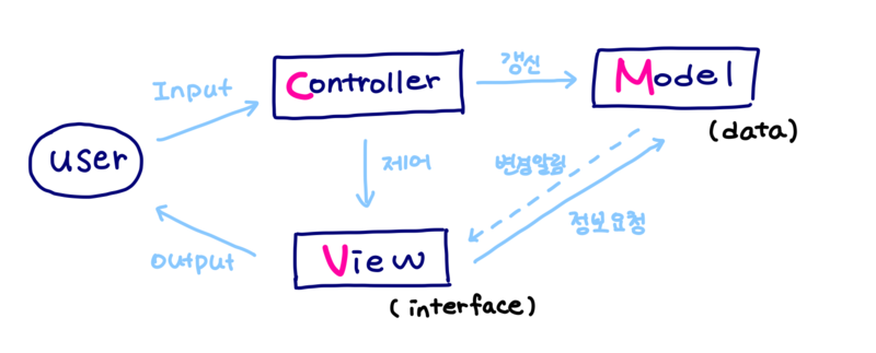 - 모델은 보관, 제어는 변경, 뷰는 보이는 역할.
